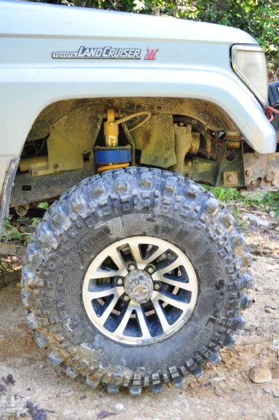 車輪洩氣,讓輪子更加柔軟,容易開過去。