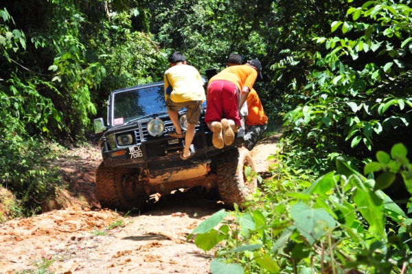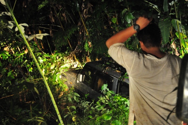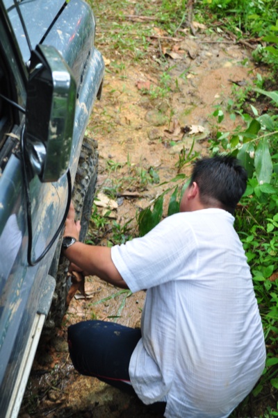 只是從回程開始,我們路都不好走,一直都是下車砍樹,砍竹,造路等等,弄著弄著就深夜了。