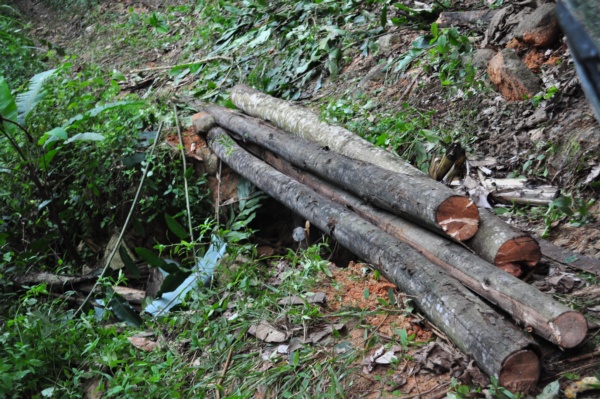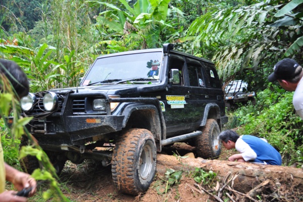 路陷,以樹幹撐著開車過去。