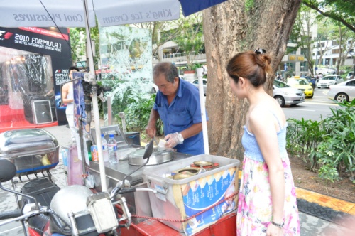 整條烏節路,有好多攤販在賣 面包夾冰琪淋/蘇打餅夾冰琪淋