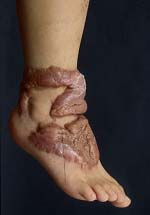Keloid scars. These scars are the result of an overly aggressive healing process. These scars extend beyond the original injury. Over time, a keloid scar may affect mobility. Possible treatments include surgical removal, or injections with steroids. Smaller keloids can be treated using cryotherapy (freezing therapy using liquid nitrogen). You can also prevent keloid formation by using pressure treatment or gel pads with silicone when you sustain an injury. Keloid scars most often occur in Blacks.